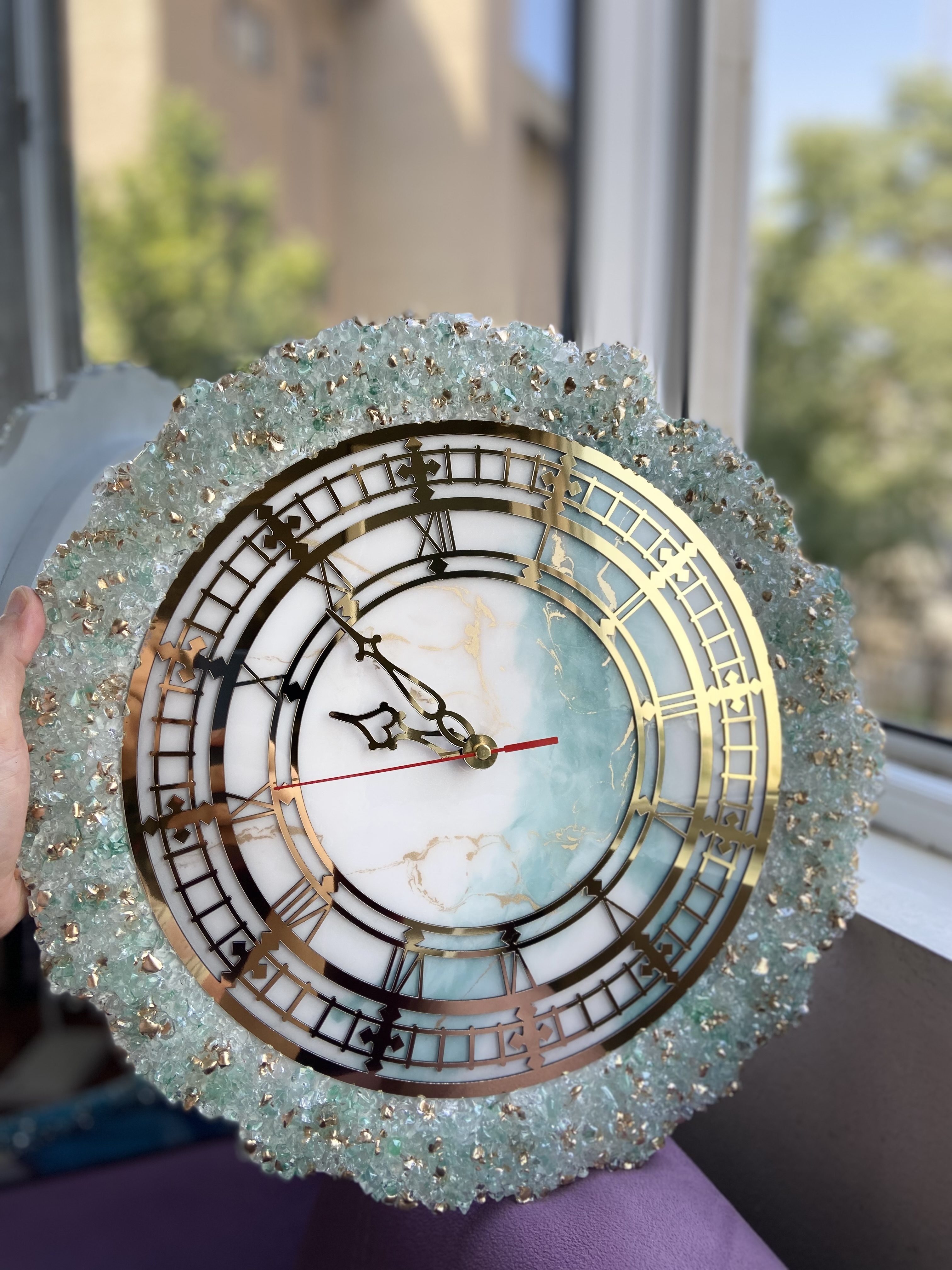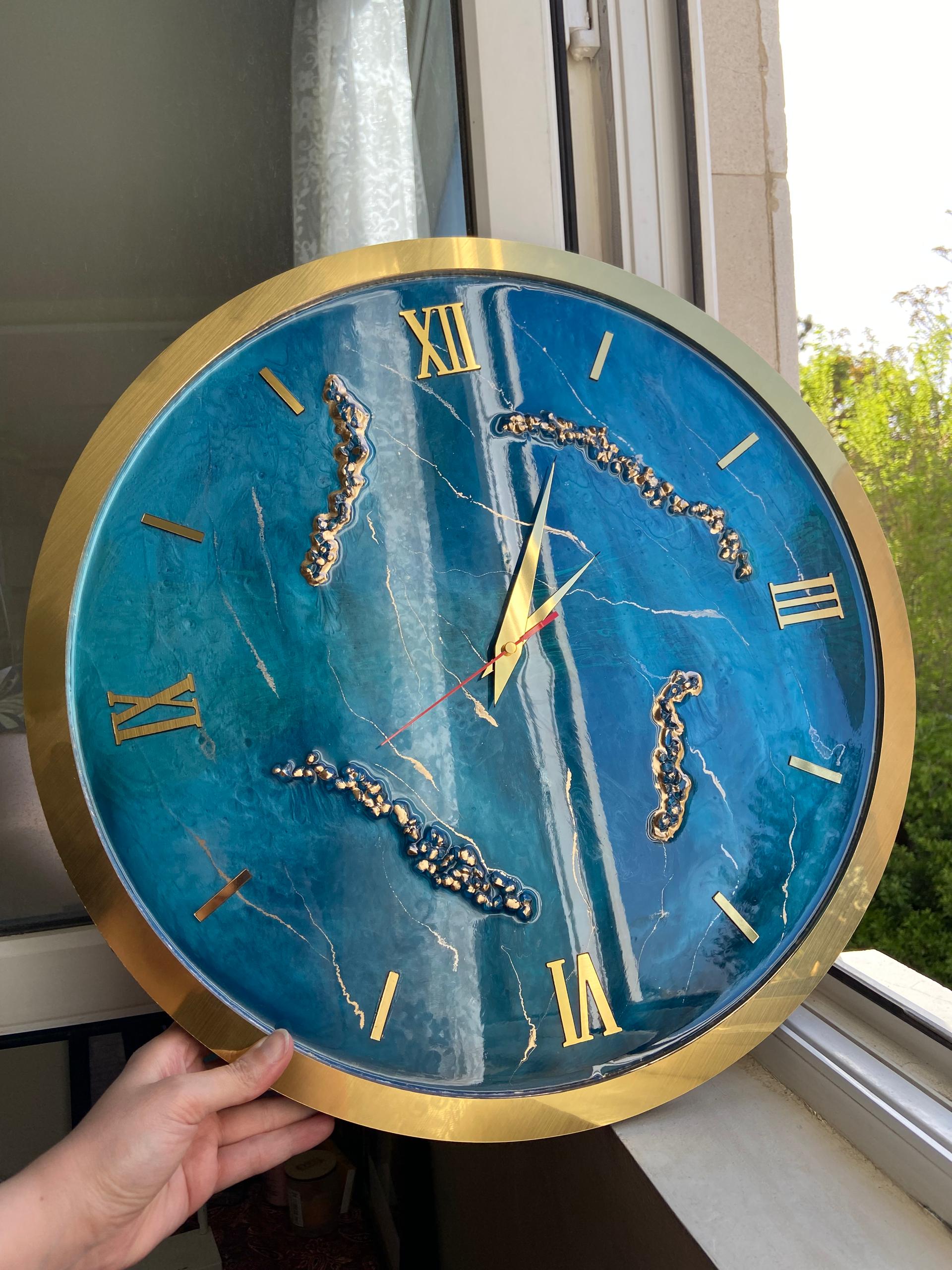 ساعت دیواری رزینی آبی اقیانوسی با بدنه MDF و تزئین شده با کریستال/ دست ساز۱٬۶۰۰٬۰۰۰ 6%