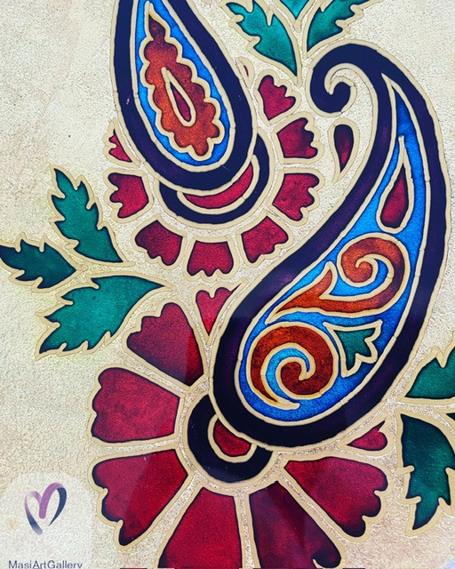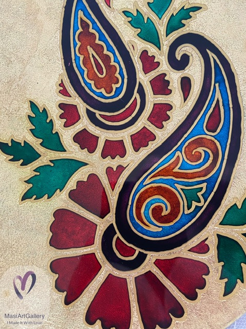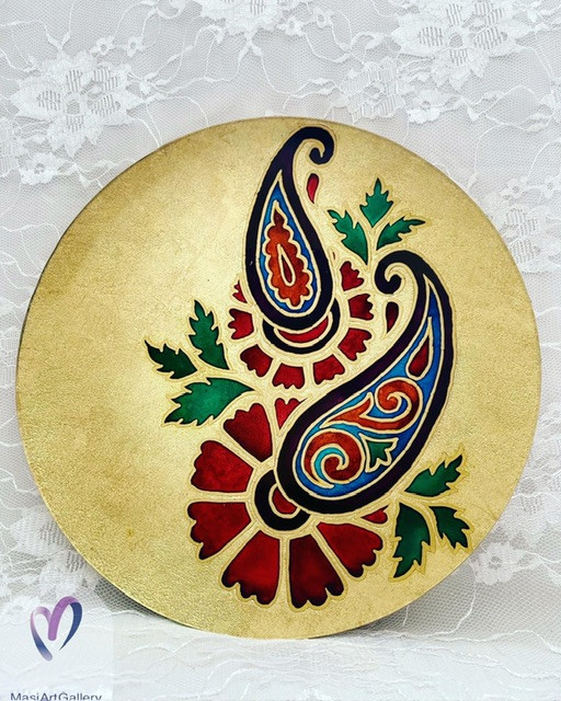 بشقاب دکوراتیو طرح بته جقه با تکنیک ویترای