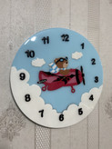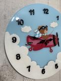 ساعت دیواری کودک رزینی مدل تدی خلبان/دست ساز و فانتزی برای اتاق کودک