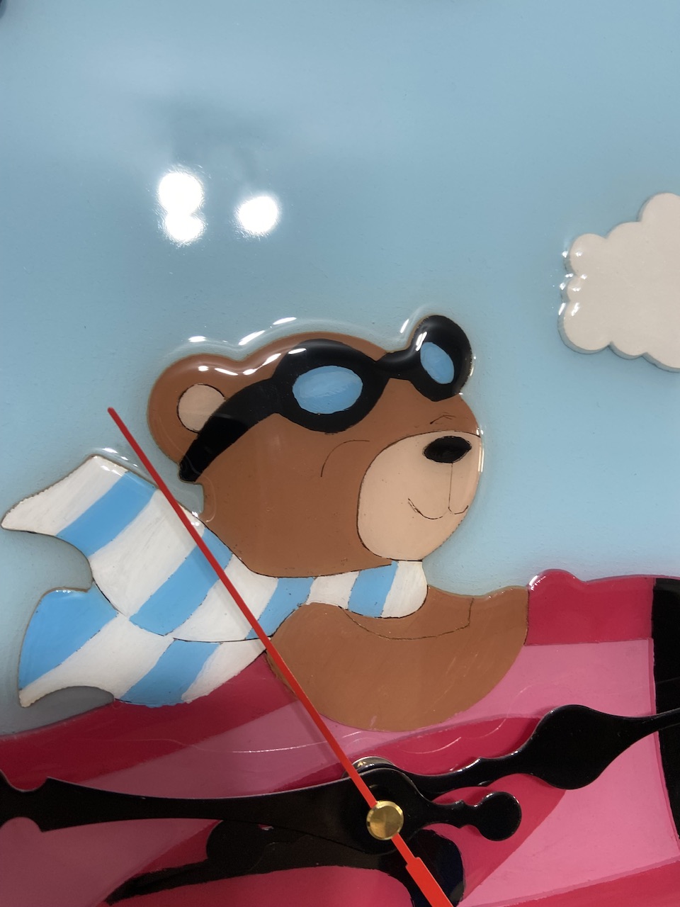 ساعت دیواری کودک رزینی مدل تدی خلبان/دست ساز و فانتزی برای اتاق کودک