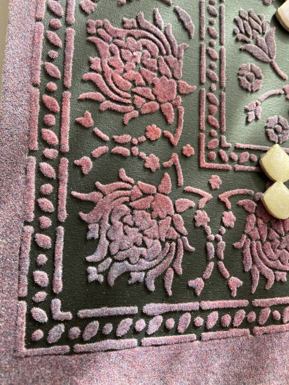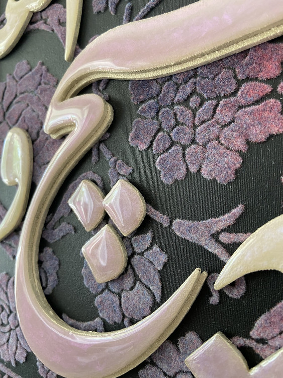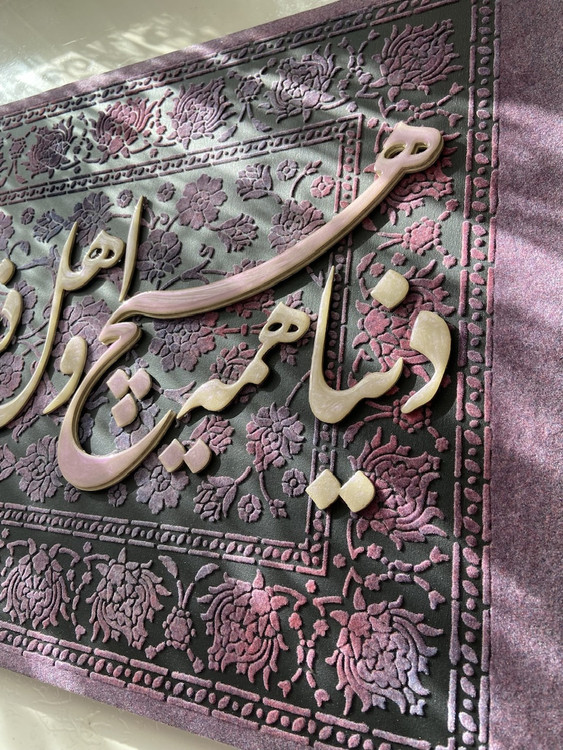 این تابلوی زیبا با طرح فرش و خمیر تکسچر و پودر مخمل ، عمق و لطافت خاصی به اثر بخشیده است.